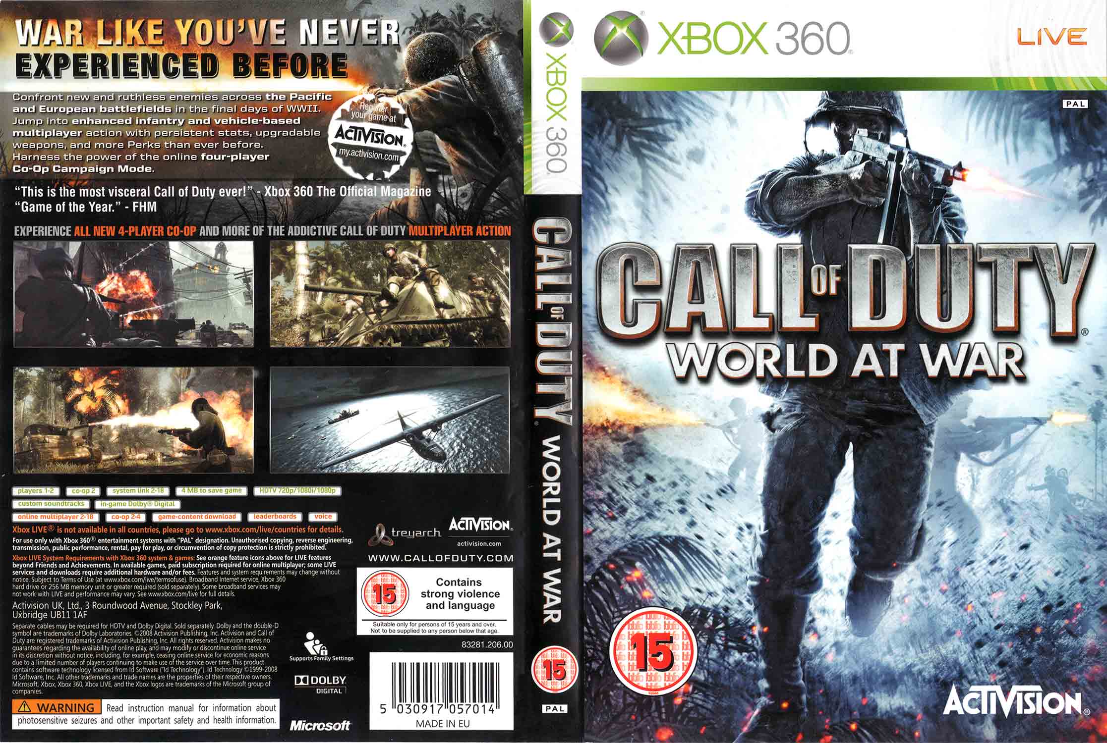 World at War se nebojí ukázat válku bez cenzury. Japonští vojáci předstírají smrt, aby vás mohli napadnout zezadu. V džungli na vás čekají pasti a nepřátelé schovaní v tunelech pod zemí. Na východní frontě procházíte zdevastovanými městy, kde se nepřítel skrývá za každým rohem a odstřelovači číhají ve zřícených budovách. Hra využívá fyzikální engine, který umožňuje ničení prostředí — střely rozpadají dřevěné přístřešky a granáty trhají stromy. Každá mise nabízí momenty, kdy se musíte rozhodnout v zlomku sekundy, a nesprávná volba znamená konec.