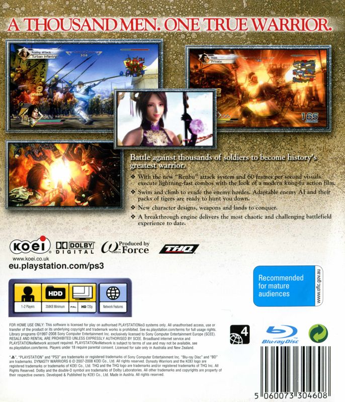 Dynasty Warriors 6 pro PS3 je součástí dlouholeté série akčních bojových her, které vás zavedou do období Tří království v Číně. Zažijte masivní bitvy, ve kterých se postavíte hordám nepřátel, a využijte propracovaný systém komb pro plynulý a dynamický boj.