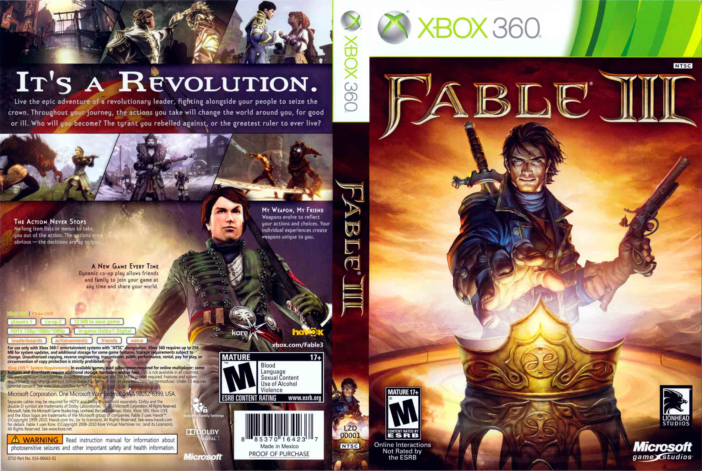 Fable III pro XBOX 360 bohatě rozvinulo sociální mechaniky. Budování vztahů s NPC postavami přináší prsteny, domy a věrné přátele. Systém doteků nahradil abstraktní oblíbenost přímou interakcí — vedete NPC za ruku, objímáte je, hrajete si s nimi. Celou hru lze absolvovat v online kooperaci pro dva hráče, přičemž oba hráči mají vlastní postavy, vlastní svět a vlastní splněné nebo porušené sliby koalice.