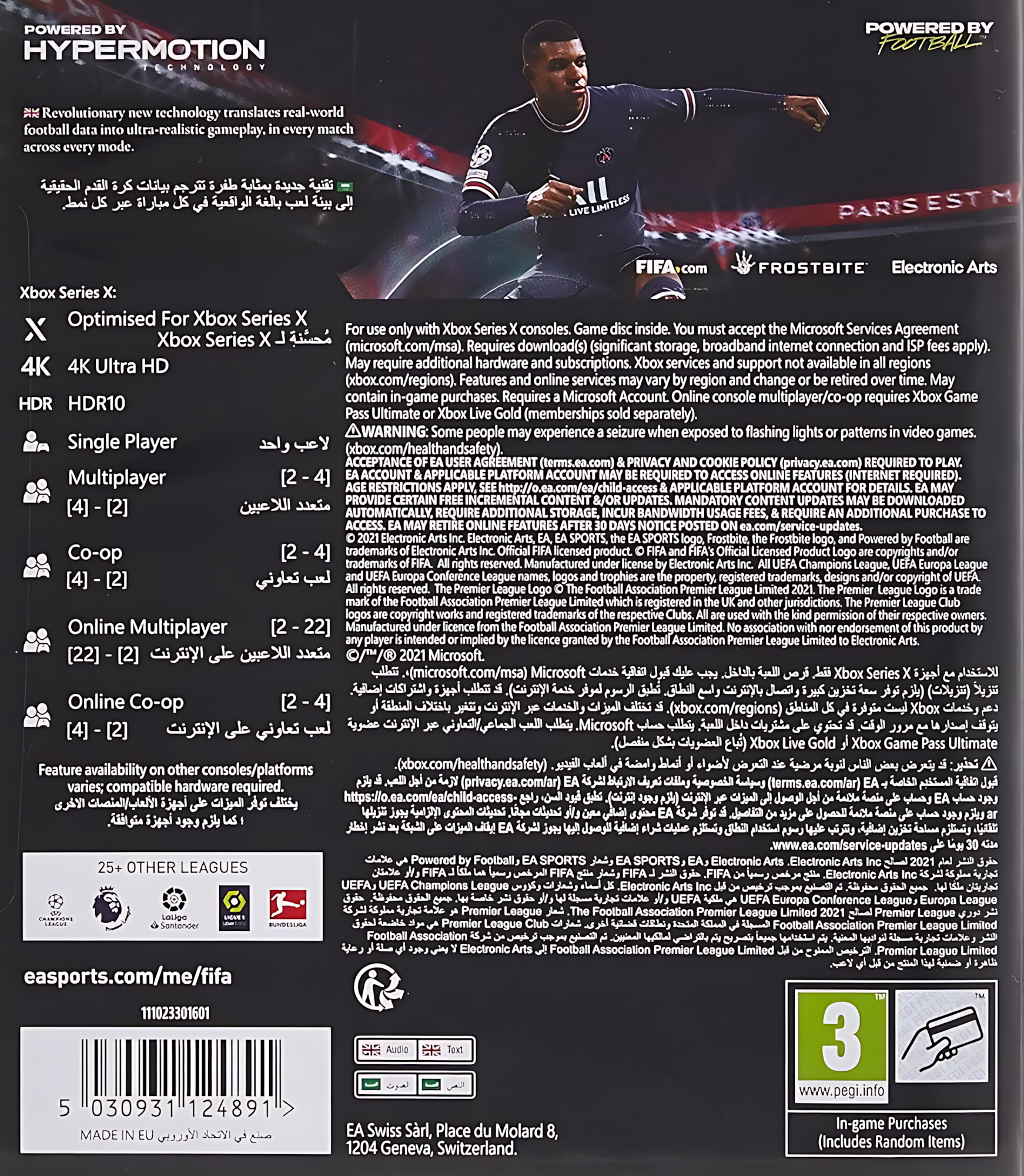 Tato hra maximalizuje výkon Xbox Series X s rychlými načítáními, 60+ FPS a optimalizací pro next-gen. Ať jste fanoušek sportovních her, fotbalových simulací nebo hledáte zábavu pro více hráčů, FIFA 22 nabízí komplexní fotbalový zážitek. Hrajte sólo, s kamarády lokálně nebo online, sbírejte achievementy a užijte si sezónní aktualizace. Ideální volba pro milovníky Premier League, La Ligy či mezinárodních turnajů jako CONMEBOL Libertadores.