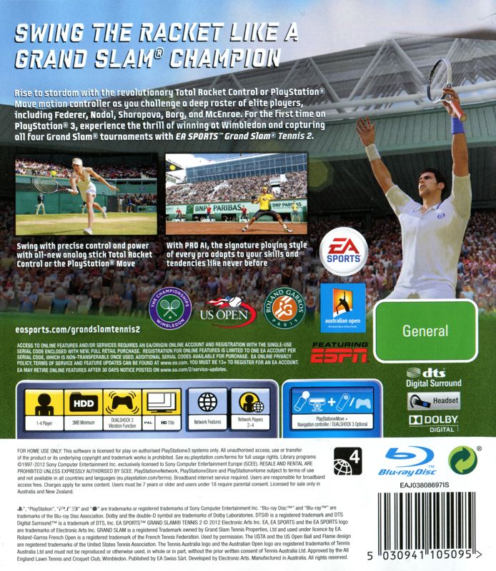Grand Slam Tennis 2 pro PS3 tě vezme přímo na kurty nejslavnějších tenisových turnajů světa – Wimbledon, Roland Garros, US Open i Australian Open. Užiješ si souboje hvězd jako Novak Djokovic, Rafael Nadal, Serena Williams nebo legendární John McEnroe a vyzkoušíš si, jaké to je bojovat o kariérní Grand Slam v realistickém sportovním simulátoru od EA Sports. Hra nabízí bohatou kariéru, licencované hráče i turnaje a precizní ovládání, které odmění přesnost a taktiku na konzoli Playstation 3.