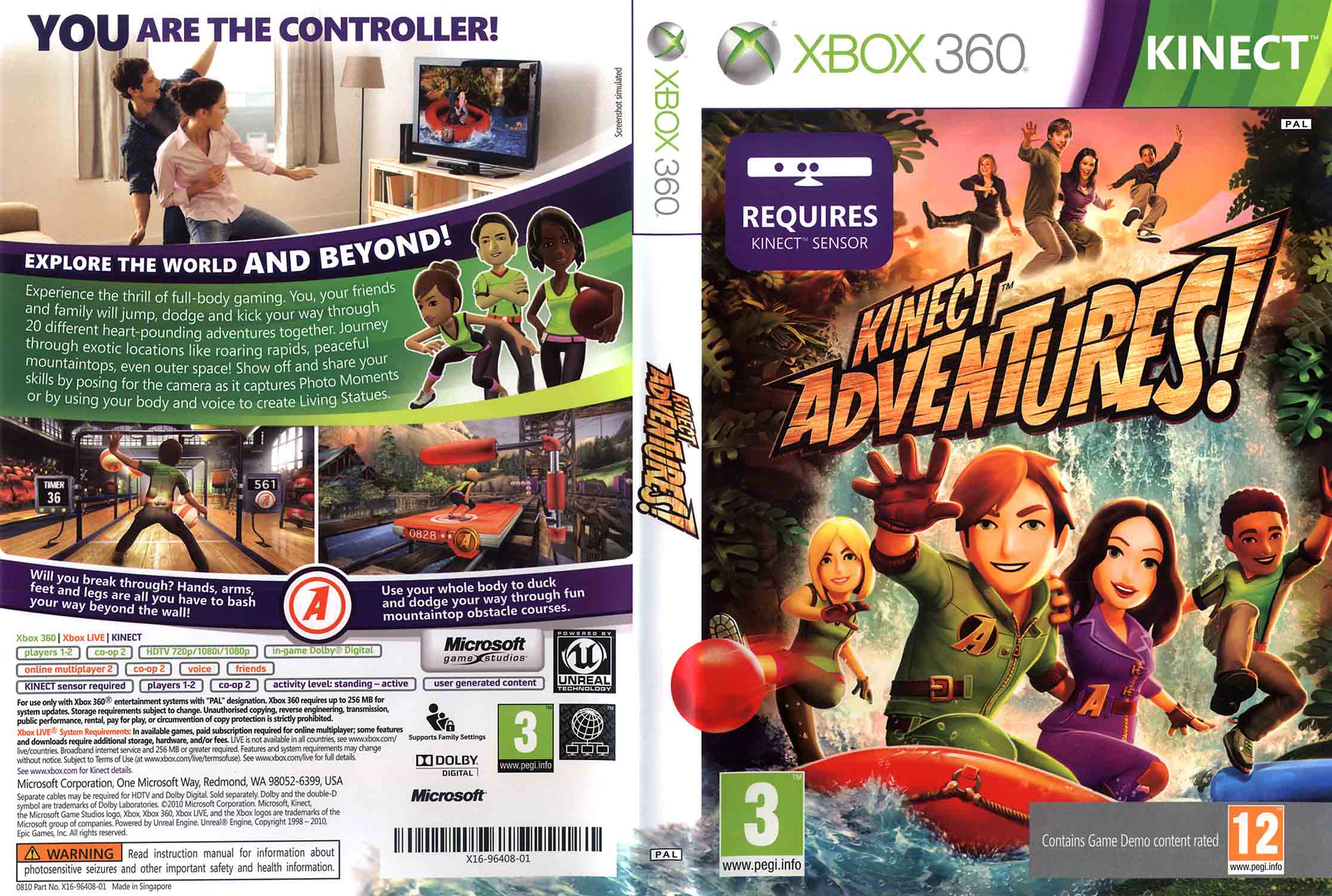 Kinect Adventures! pro Xbox 360 patří mezi nejprodávanější tituly platformy s více než 24 miliony prodaných kopií po celém světě. Tato pohybová hra od studia Good Science Studio přinesla na konzoli Xbox 360 zcela nový způsob zábavy, kde ovladačem je vaše vlastní tělo. Díky senzoru Kinect se stanete přímým účastníkem akce a prožijete dvacet napínavých dobrodružství plných skákání, uhýbání a reflexních výzev. Hra vyšla 4. listopadu 2010 a okamžitě se stala symbolem pohybového hraní na konzoli Xbox 360.