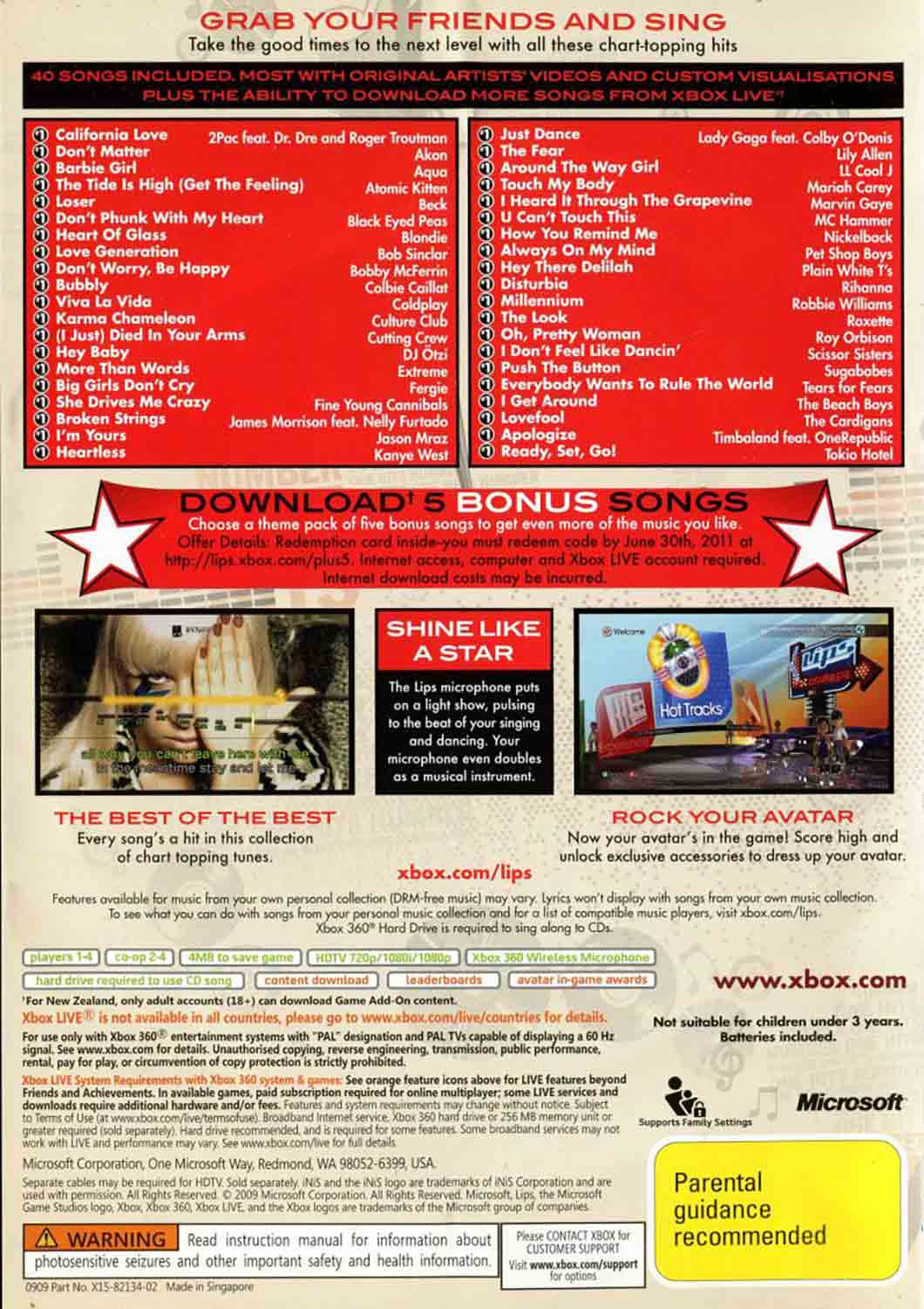 Čtyřicet nezapomenutelných hitů, bezdrátové mikrofony a vaši nejbližší kolem televize — Lips: Number One Hits pro XBOX 360 je karaoke zážitek, který promění každý večer v koncert. Ať už milujete pop, rock nebo dance, tahle sbírka světových hitů nabídne písničku pro každého.