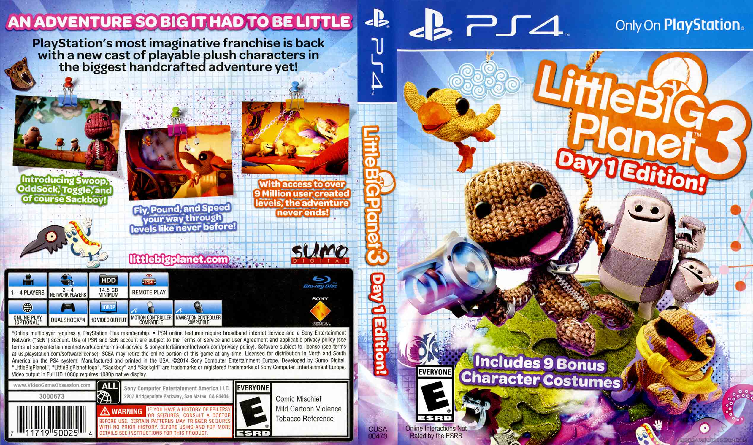 Sackboy není na své obvyklé výpravě porazit zlotřilého Newtona (ve hře LittleBigPlanet 3), sám. Vůbec ne. Tentokrát do měkkého světa vstupují tři zcela nové ručně ušité postavičky – takže tvoje dobrodružství v sérii LBP už nikdy nebude jako dřív. Ale nemysli si, že se starý dobrý Sackboy nechá svými novými kamarády zahanbit. Pletený rytíř dostal do vínku novou schopnost šplhání a sadu zbrusu nových bonusových předmětů, jako jsou úžasný Pumpinator, Blink Ball a Hook Hat. S těmito čtyřmi vlněnými zázraky ve výbavě se planeta Bunkum jistě podiví – a Newton dostane, co zaslouží. Zachraň svět plný představivosti. Oživ svojí představivost díky šikovným nástrojům pro úpravu a sdílej svoje výtvory se světem jediným dotykem tlačítka PS4 SHARE. Pomocí unikátních schopností postavy Sackboy a jeho nových přátel jménem Toggle, OddSock a Swoop prozkoumej všechny zákoutí Imagisphere a odhal záhadu planety Bunkum. Pak objev nové fantastické úrovně a hry, které vytvořila a sdílela komunita LittleBigPlanet.