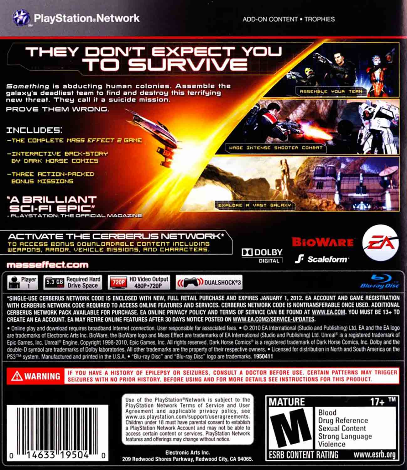 Mass Effect 2. Dva roky poté, co velitel Shepard odrazil invazi Smrťáků s cílem zničit veškerý život, se objevuje nový záhadný protivník. Na hranicích známého vesmíru někdo potichu a nenápadně unáší obyvatele celých lidských kolonií. Aby odvrátil nejstrašnější nebezpečí, jakému kdy lidstvo čelilo, je Shepard nucen začít spolupracovat se nelítostnou organizací Cerberus, oddanou přežití lidské civilizace za každou cenu. Chce-li se vůbec pokusit na této riskantní misi uspět, musí Shepard shromáždit tu nejelitnější jednotku z celé galaxie a ujmout se velení nejvýkonnější lodi, jaká kdy spatřila světlo světa. I tak ale panuje přesvědčení, že výprava je spíše sebevraždou. Velitel Shepard je však odhodlán dokázat nemožné.