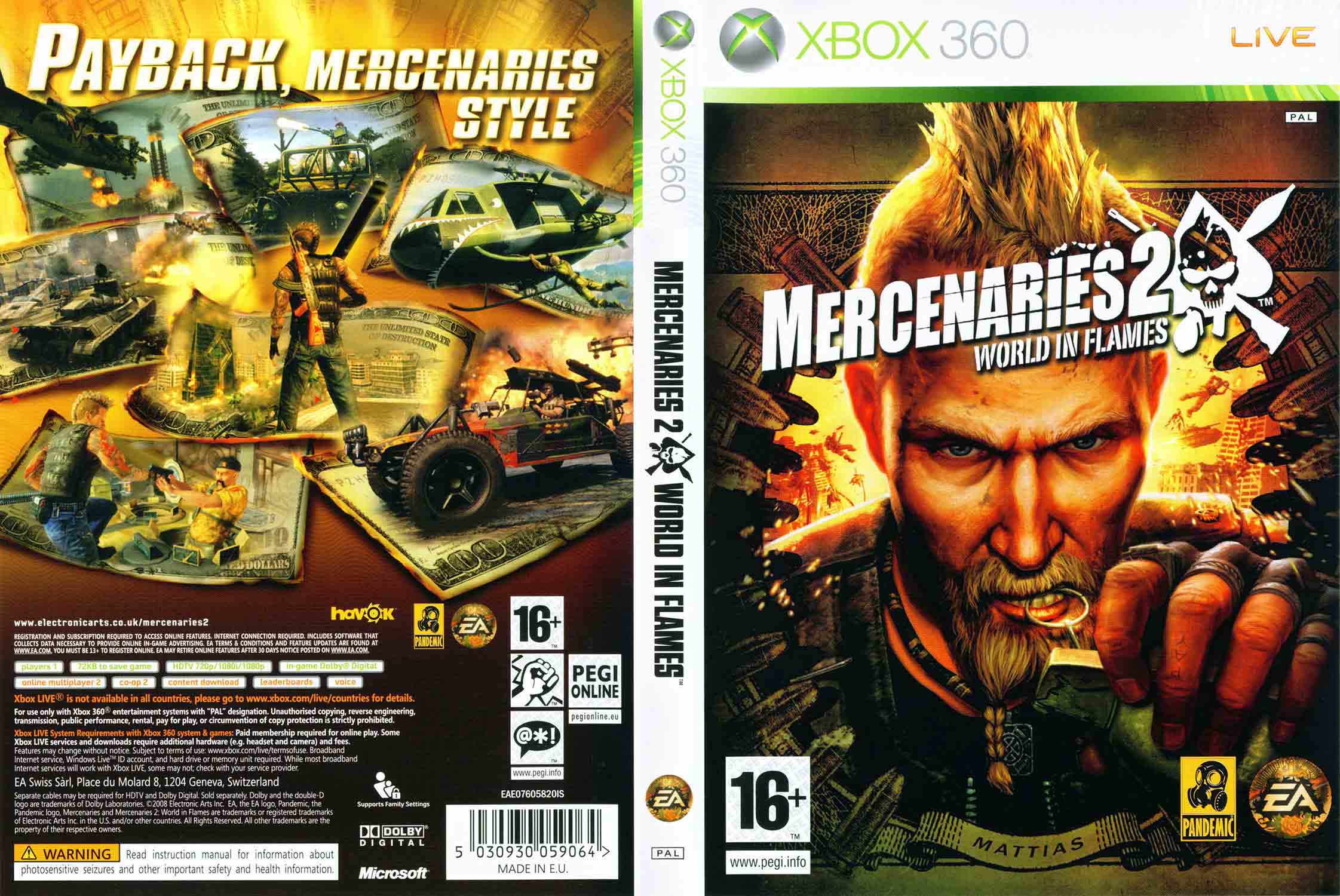 Mercenaries 2: World in Flames pro XBOX 360 vás pošle do válkou zmítané Venezuely jako žoldáka, který má jediný cíl — pomstít se muži, který se ho pokusil zabít. Tato akční hra s otevřeným světem nabízí naprostou svobodu v přístupu k misím a ohromující množství destrukce, jakou jen málokterá hra dokáže nabídnout.