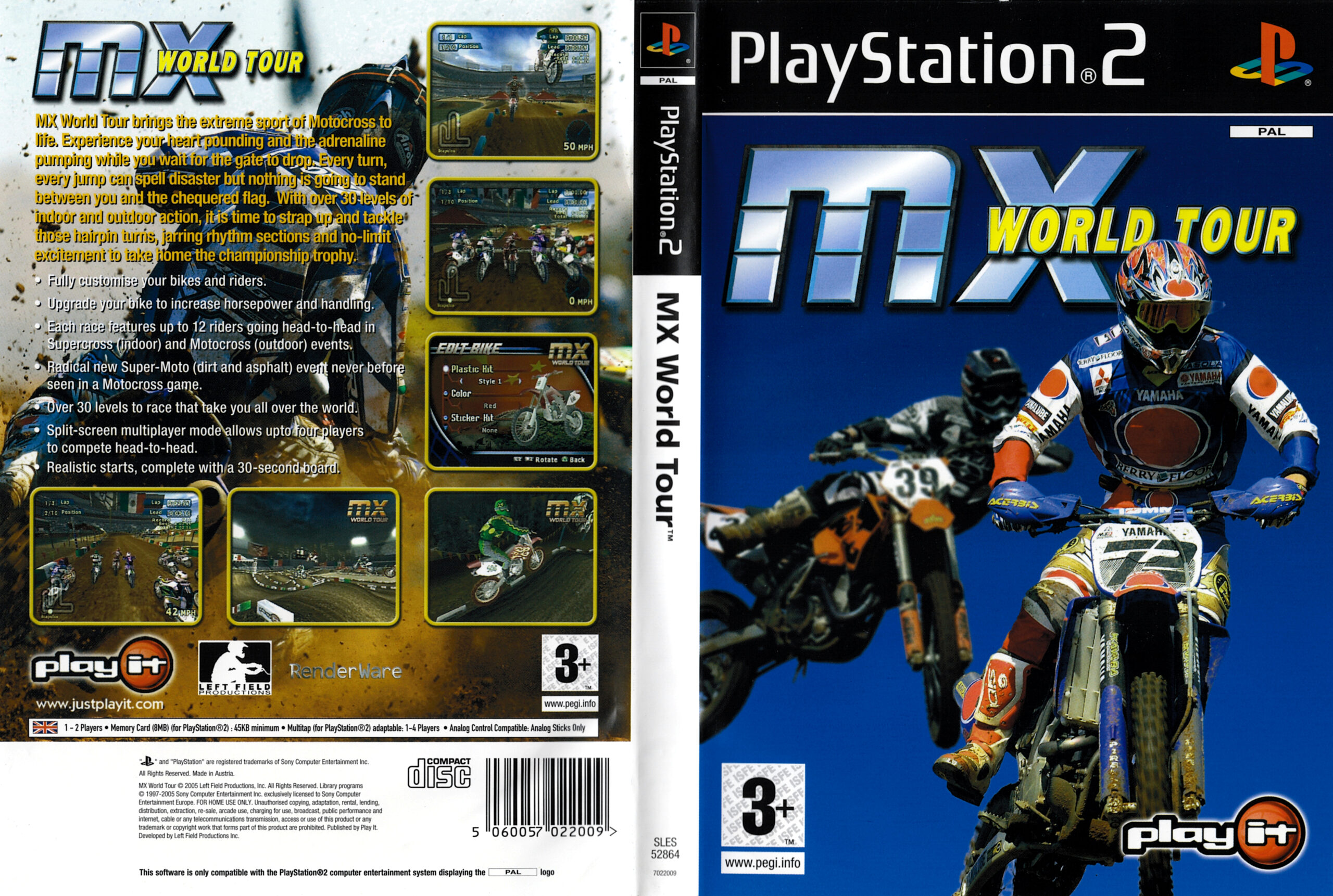 Zažijte adrenalinem nabité motokrosové závody, úpravy motorek a multiplayerové výzvy ve hře MX World Tour pro PS2.