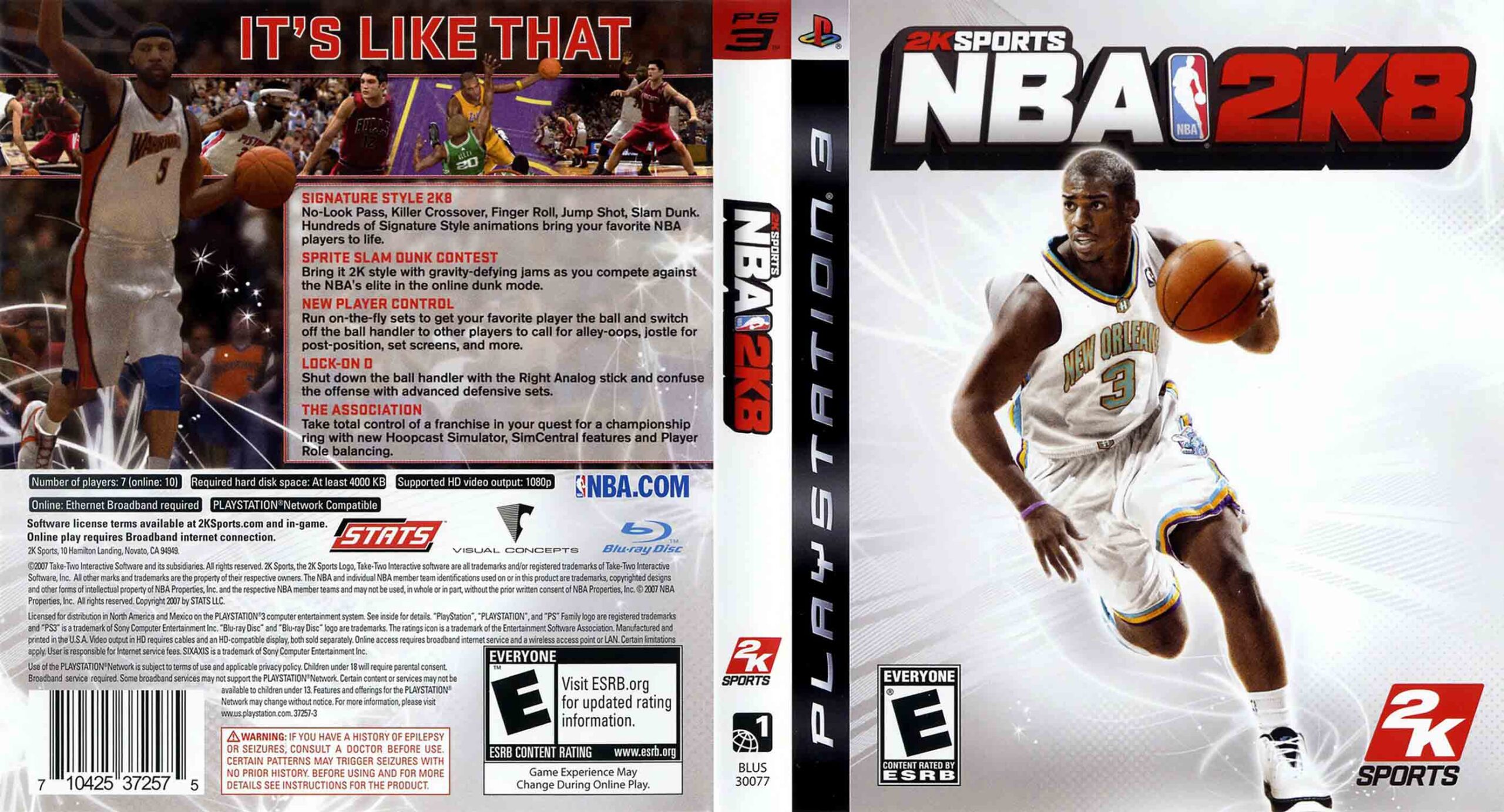 - Každý hráč byl ve hře NBA 2k8 pro PS3 byl kompletně přepracován, aby se zlepšily podobizny a celková grafická kvalita. Kevin Harlan a Kenny Smith nyní poskytují emocionálně nabitý komentář a nová funkce Game Wrap-Up vám umožňuje vybrat si druh pořadu po hře, který sledujete.