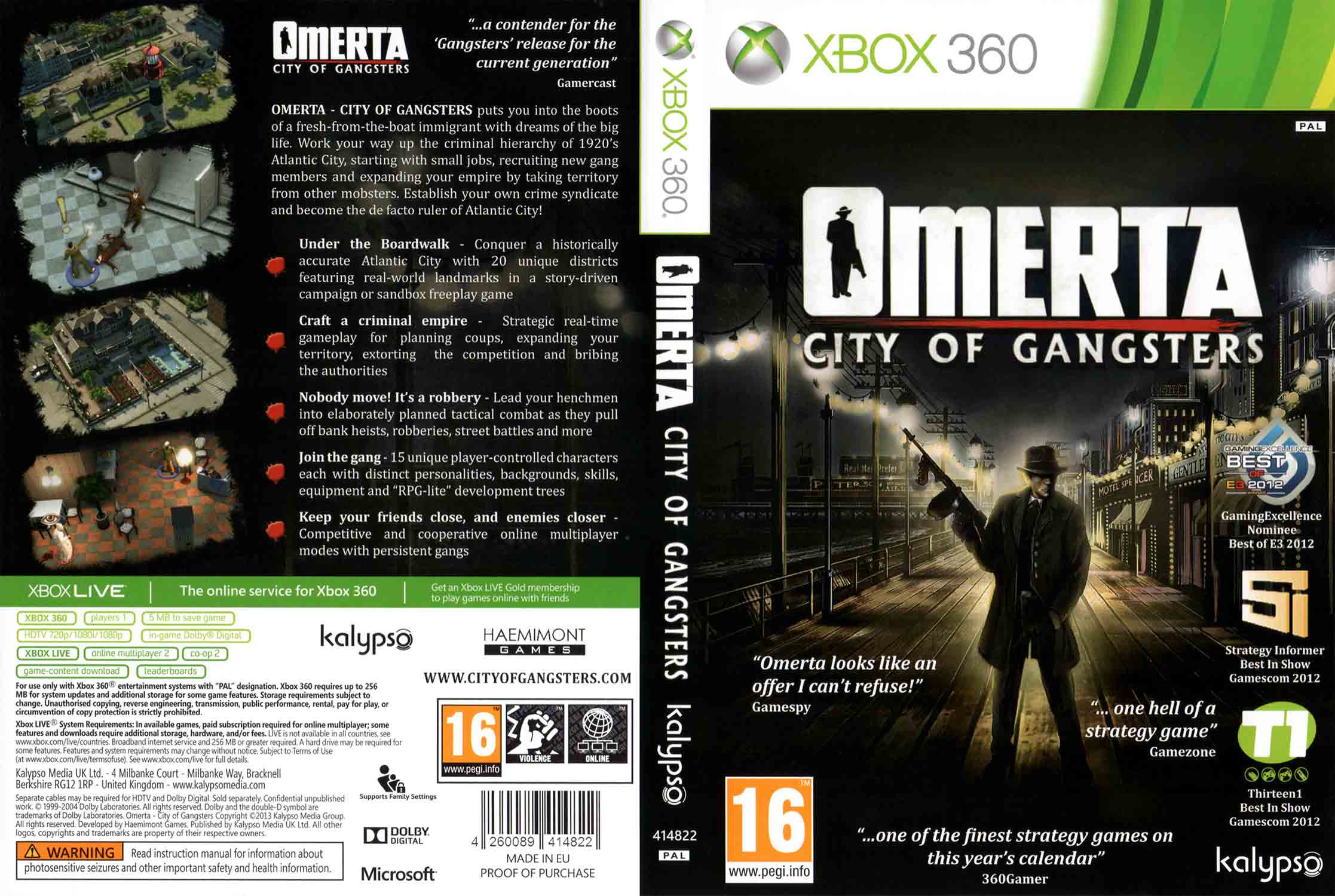 Strategie a taktika se v Omerta: City of Gangsters pro XBOX 360 spojují do jedinečného gangsterského zážitku zasazeného do období americké prohibice. Ujmete se role italského imigranta, který přijíždí do Atlantic City s prázdnými kapsami a velkými ambicemi. Postupně vybudujete vlastní zločinecké impérium a stanete se nekorunovaným vládcem města.