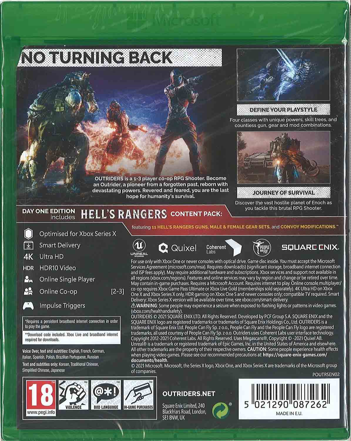 – Vstupte do brutálního a nehostinného světa, kde lidstvo bojuje o svou existenci. Outriders vás zavede do temného a nebezpečného vesmíru, kde musíte přežít za každou cenu. Jako Outrider, nejlepší z nejlepších, budete průzkumníkem na planetě Enoch, kde se setkáte s neuvěřitelnými výzvami, hrozivými nepřáteli a tajemstvími, která mohou změnit osud lidstva.