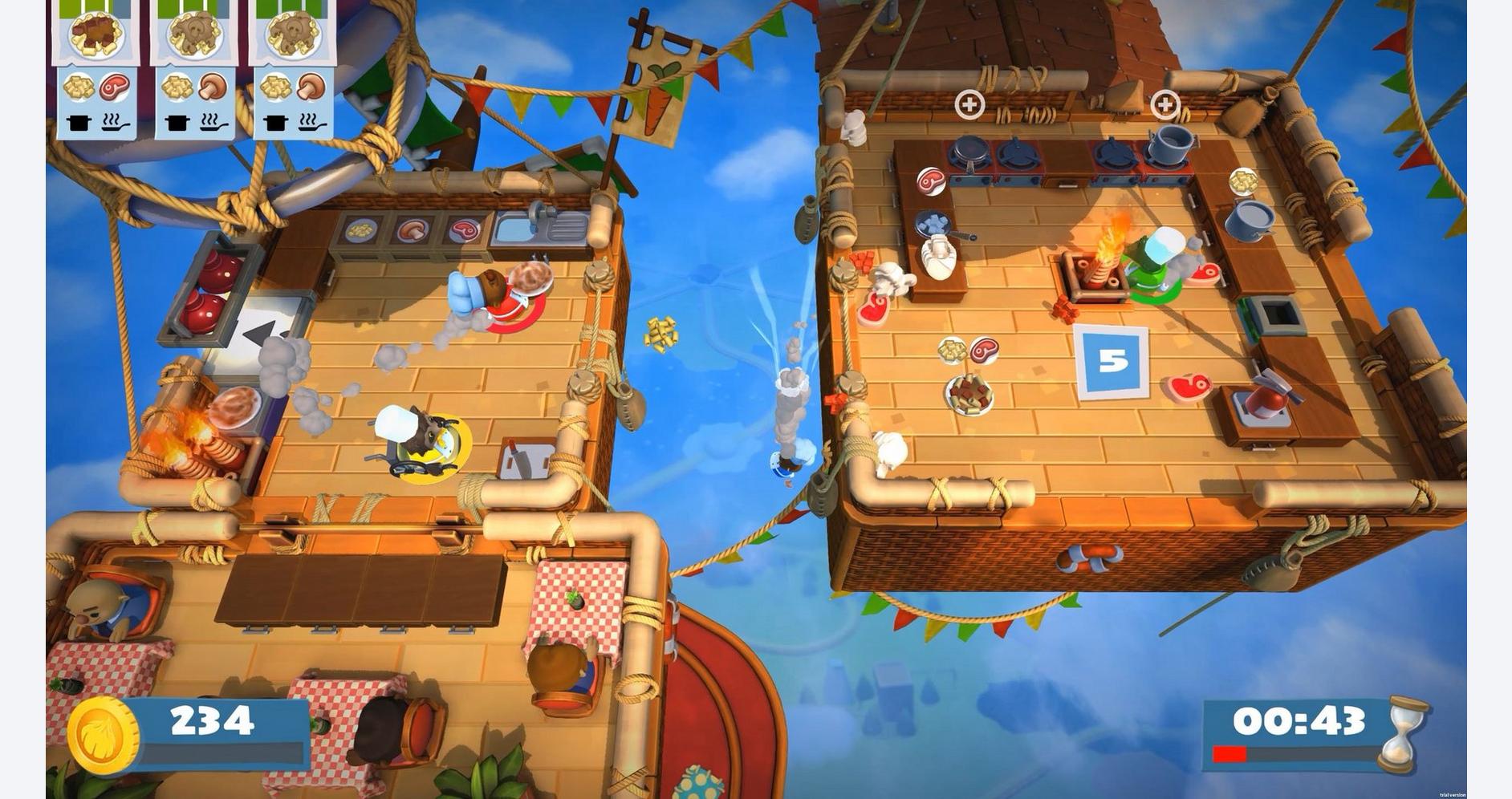 - Možnost házet ingredience mezi spoluhráče, což posiluje týmovou strategii i tempo hry.