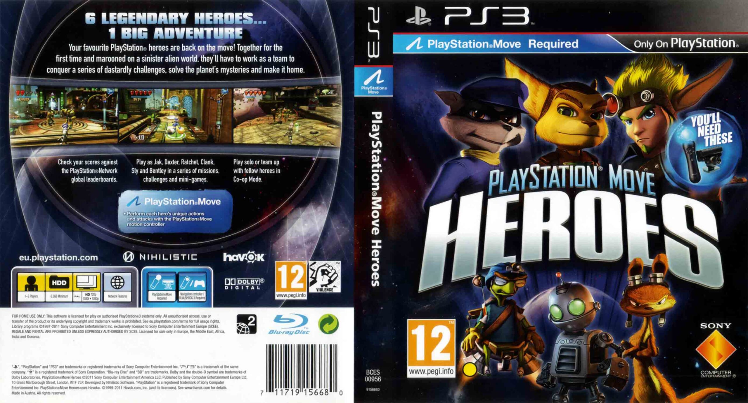 Jak a Daxter, Ratchet a Clank, Sly a Bentley. To jsou jedny z nejvýraznějších dvojic, jaké kdy na systému PlayStation spatřily světlo světa. Teď máte vůbec poprvé možnost zažít všechny tyto tři mocné partnerské spolupráce v jediné hře – PlayStation Move Heroes. Objevujte dobře známá prostředí z báječných hitů herních řad Ratchet & Clank, Jak and Daxter a Sly Raccoon. Mírumilovnou rasu mimozemských bytostí zotročila mezigalaktická hrozba a hrozí, že jejich domovské planety nadobro zničí. Vraťte úder rozhodujícím náporem s pohybovým ovladačem PlayStation®Move a prosekejte, prostřílejte a probičujte si cestu na svobodu. Hra PlayStation Move Heroes má před sebou jedinečné vyhlídky. Teď máte příležitost zjistit, jakým způsobem společnost Nihilistic Software všechny tyto legendární postavy spojila dohromady. Třeba jsou jednotliví členové týmu bezmezně oddáni jednomu z hrdinů? Třeba vyšlo o každém z hrdinů na světlo pár překvapujících skutečností? Nebo byste jednoduše rádi věděli, jakým způsobem pohybový ovladač PlayStation® Move probouzí určité fascinující schopnosti?