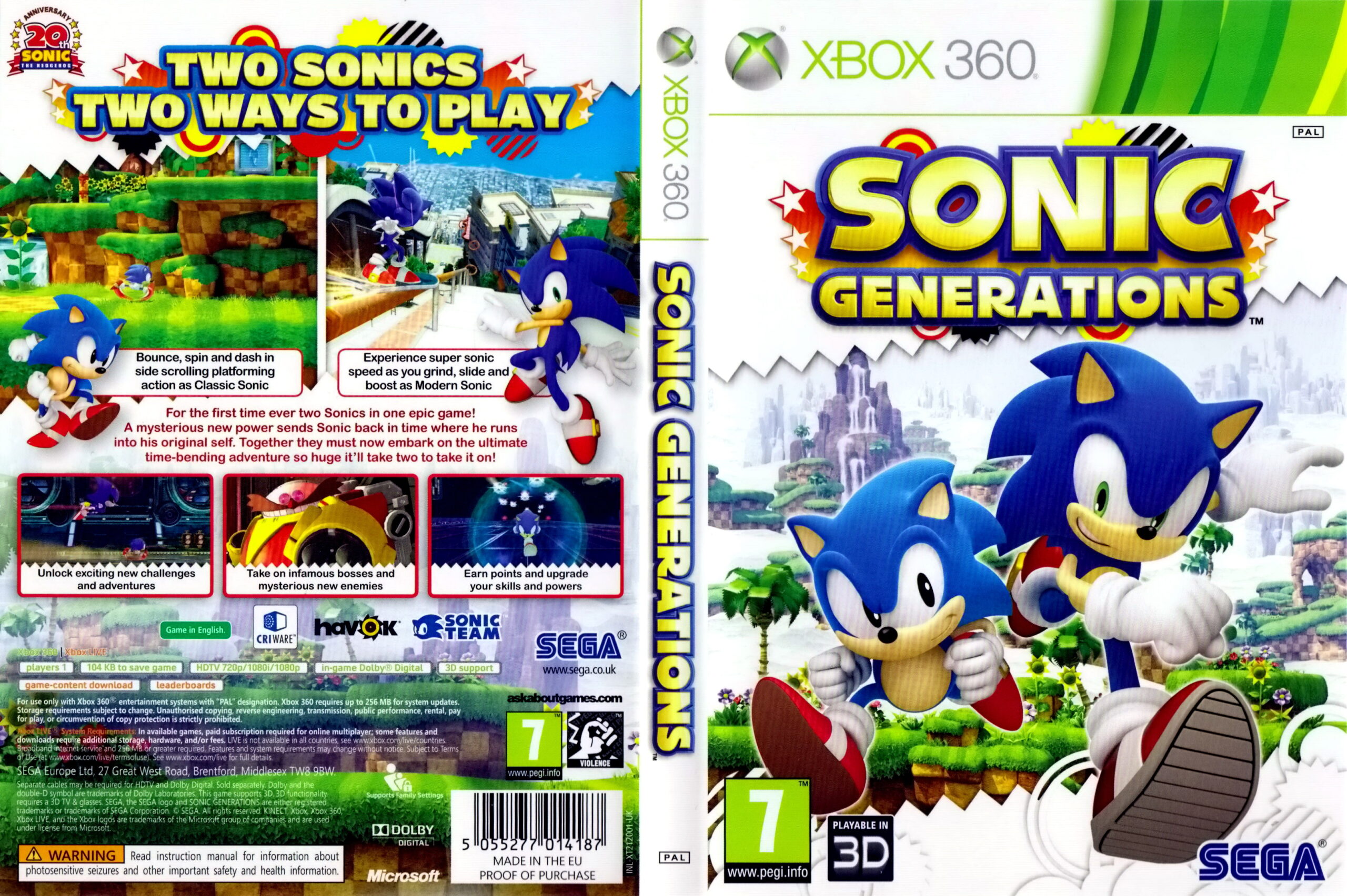 Dva Sonicové, jedna hra a celá historie slavného ježka v novém kabátě — Sonic Generations pro XBOX 360 spojuje klasickou 2D plošinovku s moderním 3D akčním běháním v oslavě nejrychlejšího herního hrdiny.