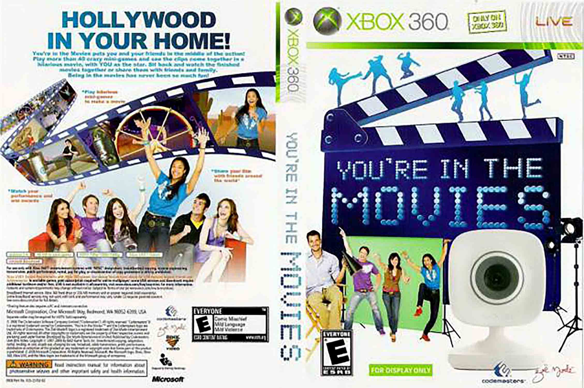 Staňte se hvězdou vlastního filmu — You’re in the Movies pro XBOX 360 je originální párty hra, ve které kamera snímá vaše pohyby a promítá vás přímo do filmových scén plných akce, humoru a nečekaných zvratů. Společně s přáteli natočíte vlastní snímky napříč žánry od hororu přes western až po romantickou komedii.